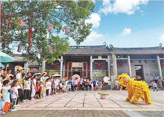 岭南印象园,非遗醒狮送生菜,寓意“生财” 景区供图