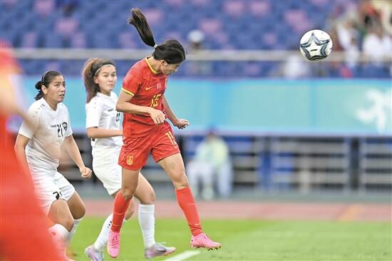 本届亚运会,中国女足曾在小组赛第二轮以6比0战胜乌兹别克斯坦队,当时王珊珊和闫锦锦完成双响,陈巧珠收获亚运首球。此番再战,中国女足自始至终掌控全场节奏,左翼“走廊”更是被完全打通,左翼欧懿垚的突破和左闸陈巧珠的插上助攻,全面盘活了前场进攻。
