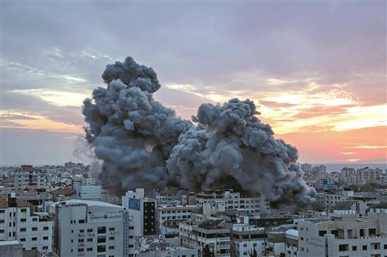 10月7日,以色列军队空袭加沙城地面建筑造成的浓烟 新华社发