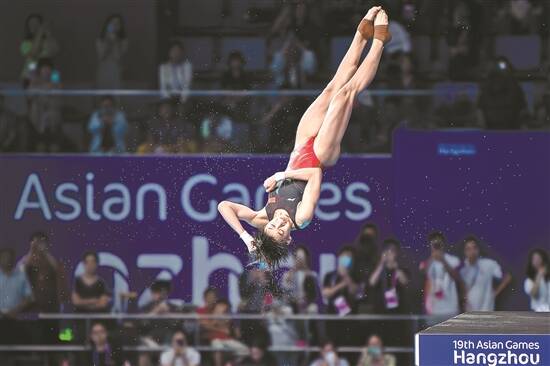 中国跳水“梦之队”的发挥同样稳健。自从中国队1974年首次参加亚运会跳水项目以来,他们还从不曾让金牌旁落。本届亚运会,中国跳水“梦之队”包揽全部十枚金牌,再次实现“十全十美”。中国选手的“水花消失术”、全红婵和陈芋汐之间的“神仙打架”等,都成为互联网上的热议话题。