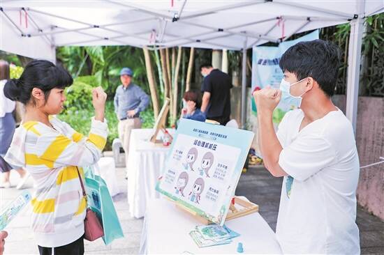 10月10日是世界精神卫生日,今年的主题是“促进儿童心理健康,共同守护美好未来”。当天,广州市卫健委及广州市精神卫生中心等多家单位,在晓港公园联合举办主题现场宣传活动。