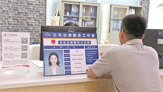 在广粤国际社区的全市首个社区涉外公共法律服务室内,市民对服务赞不绝口 郭思琦 摄