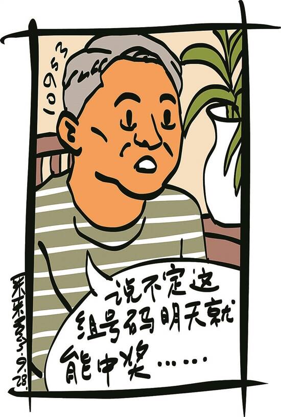 从此,顾伯多了一份任务,每天买5注彩票,风雨无阻。