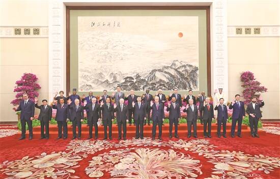 会前,习近平同出席高峰论坛的外国国家元首、政府首脑和国际组织负责人等国际贵宾集体合影 新华社发