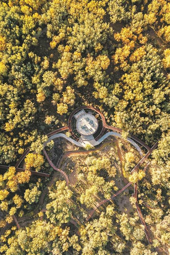而在喀什伽师县的另一处,胡杨林生态园和森林文旅生态园内的胡杨林正慢慢穿上自己的“黄新衣”。“这几天胡杨正进入变黄期,10月底来的话就能看到很美的胡杨景观了。”园内的讲解员阿提姑丽指着满园的胡杨林说道。
