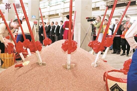 请水、进粮、填粮、润粮、拌粮、上甄、摊晾……2023郎酒重阳下沙仪式开始后,现场一道道下沙环节有条不紊开始进行,郎酒正式开始为期一年的生产酿造。