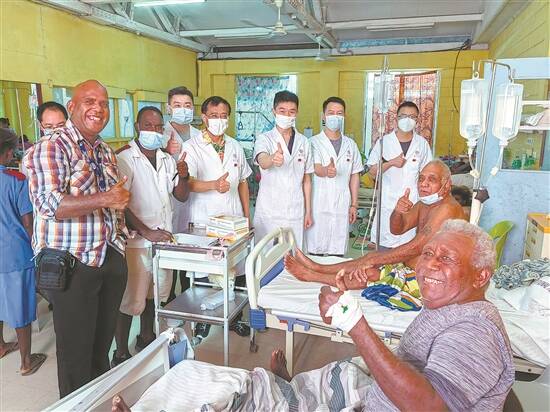 吴芃回忆,刚到瓦努阿图医院的时候,患者和医护都对他投来好奇的目光,经过几天的手术治疗,吴芃在查房的途中有不少患者主动上前和他打招呼:“你们是中国人吗,谢谢你们!”
