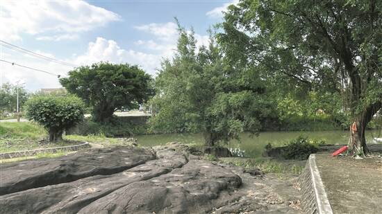 记者来到位于遂溪县的调丰古官道遗址,只见古官道位于一块巨大的黑色玄武岩石坡上,千百年前的车辙依然清晰可见,两道并行的古车辙呈纵深分布。仔细查看,周围还有深深浅浅的牛蹄印。苏轼兄弟二人乘坐高脚牛车经过的场景仿佛就在眼前。