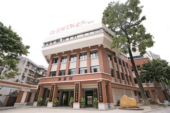 不仅是图书馆,广附努力让每一栋建筑都成为育人的阵地,营造润物无声的育人氛围,充分利用场馆展示师生的书法、绘画、科技作品、学科文化建设、学校的办学成果等,塑造学校文化品牌。学校按照既定规划,对相关主体建筑、景观、空间艺术、校园环境进行改造和治理,改善办学条件,优化育人环境,提升广大师生的获得感、幸福感,提高学校的知名度和影响力,努力把学校建成优美温馨的花园、探索求知的学园、健康成长的乐园、精神文明的家园。