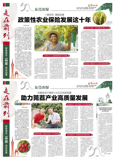 当前,荔枝已成为东莞本土种植面积最大、品种特色最鲜明、区域优势最明显的水果。为更好地“兜底”荔枝产业发展,促进荔农收入可持续增长,2022年,中国太保产险东莞分公司发起并首推东莞荔枝气象指数保险。据中国太保产险东莞分公司总经理周雅介绍,截至目前,荔枝气象指数保险已为646名农户提供了1.6亿元风险保障,助力莞荔产业高质量发展。
