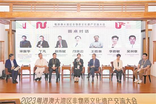 在圆桌对话环节,来自粤港澳三地的6位非遗传承人代表、专家学者围绕“如何抓住机遇,实现粤港澳大湾区非遗的交流交往交融和创新发展”的主题,探讨共建共享非遗项目、传承保护互融发展等话题,共探促进粤港澳大湾区文化交流的“非遗路径”。