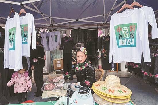 村民摆摊售卖“村BA”周边产品 羊城晚报记者 钟振彬 摄