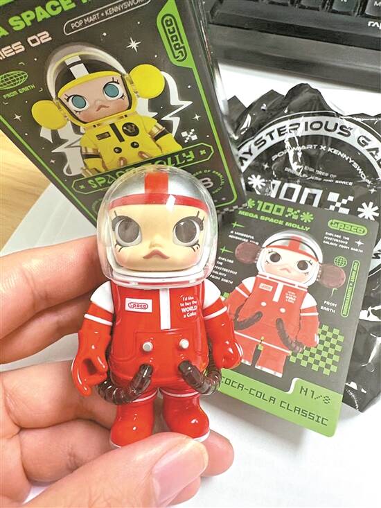 无独有偶。今年8月12日,冯先生在广东佛山岭南站广场B1的泡泡玛特机器人商店,抽了一个MEGA SPACE MOLLY 100% 周年系列2盲盒,价格为79元。他向记者详细描述了当时拆盲盒的心路历程:“回家后我赶紧拆开,看到是心仪的经典可口可乐款,超级惊喜。但越看越不对劲,仿佛缺了点什么,结果哭笑不得。”
