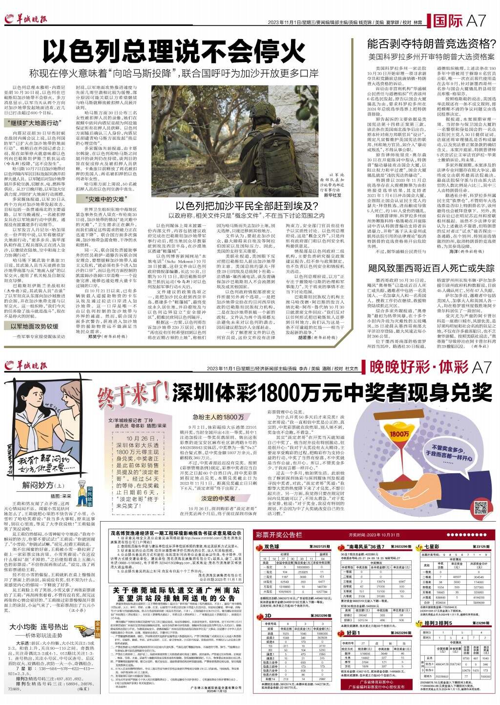 第A07版:国际;晚晚好彩·体彩;广告