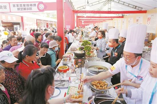“本次活动很好地展现了我们传统的客家味道,尤其是让身在异乡的客家人回来,能品尝到儿时的客家味道。”广东省“粤菜师傅”五星名厨、客家菜烹饪技艺非遗传承人陈泽换说。值得一提的是,美食周活动还邀请了“粤菜师傅”星级厨师,现场将选择最具梅州特色、客家文化内涵、群众公认的特色菜和食材作烹饪展示,向宾客和市民展示“传统客家名菜”“创新客家菜”的烹制厨艺,并设置试吃服务,为宾客和市民发放各自所在餐饮企业的消费券、优惠券等促进实体消费的引流举措。