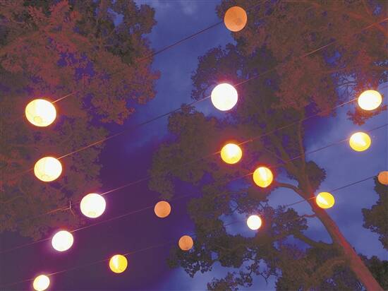 猫山王树下的灯光,夜幕降临时如同一个梦的布景