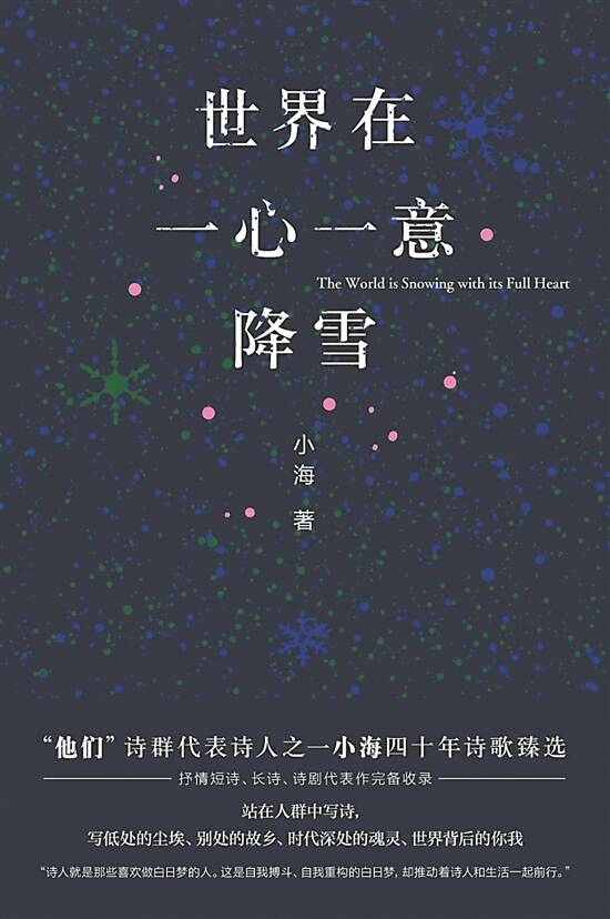 作为诗人四十年创作历程的形象缩影,小海的《世界在一心一意降雪》里的诗“常”中有“变”,具有独立的精神立场和自觉的艺术方向感,从乡土雕塑、经验书写到长诗探险,探索诗歌存在的诸种可能性。在对日常生活贴近又超越的“及物”过程中,他的诗歌烙印着江南文化的鲜明“胎记”,并能以沉潜的姿态精心打磨技巧,通过诗歌和叙述关系的重构,克服新诗的文体局限,寻找理想的诗意表达状态,从而为诗坛提供了一种沉静、睿智而自然的个人化风格。