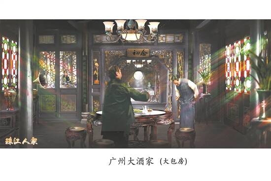 此外,在广州博物馆看到的“满洲窗”,也给吕峰留下深刻印象,“当时印象最深的就是广式彩色玻璃窗。后来我们决定把剧中广州大酒家场景里所有玻璃都换成彩色玻璃窗,工作量非常大,有几百块窗户要更换。但实际呈现到荧屏里会看到这个彩色玻璃很出彩,在一些背景上出现是很提气的”。