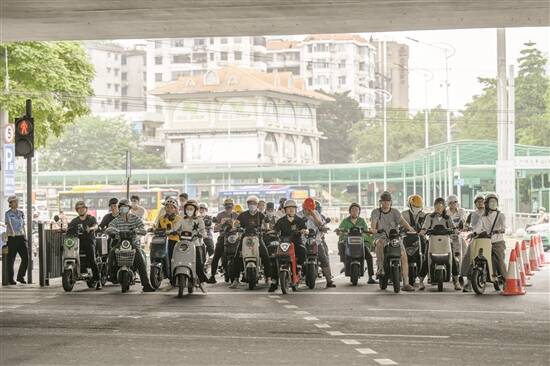 广州大北立交桥底下,众多骑着电动自行车的市民等待绿灯(资料图) 羊城晚报记者 钟振彬 摄
