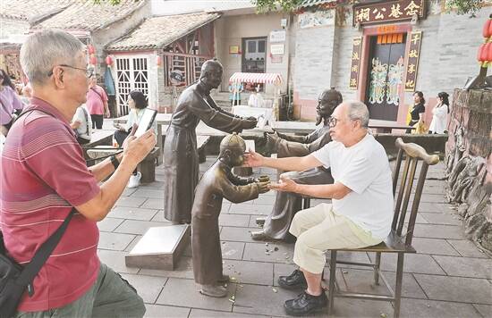 “这棵古榕树已经有500多年历史,见证着古村的兴旺发展。”南社村口大榕树下,景区讲解人员正带着一拨游客介绍着,村道两旁林立着各种保持完整的祠堂、庙宇,古色古香别具风情。