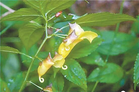 据介绍,滇南凤仙花属凤仙花科,为草本植物,生于混交林下或密林中,高可达60厘米,茎直立,无毛。叶互生,具柄,总花梗腋生或顶生,花梗细,花黄色或有紫红色斑点。花芽近卵圆形,花药钝,子房纺锤状。花期8-9月,果期9-10月。具有很高的观赏价值和很好的开发利用前景。