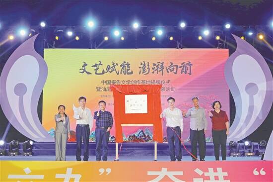 羊城晚报讯 记者赵映光,通讯员陈保良、单文轩摄影报道:11月7日晚,“中国报告文学创作基地”揭牌仪式在汕尾市城区捷胜镇军船头村举行,来自全国各地的十多位知名作家在现场共同见证。该创作基地的落户,将进一步推动汕尾乃至广东的文学高质量发展。