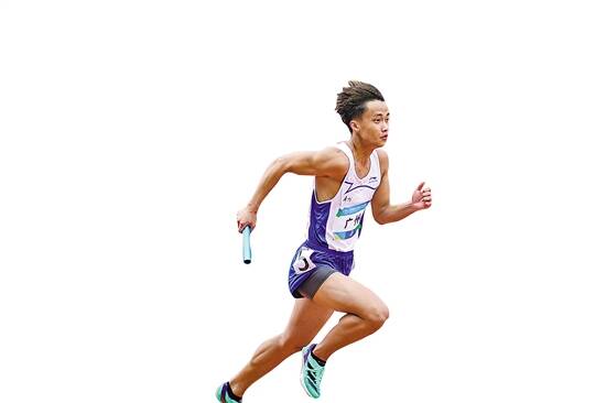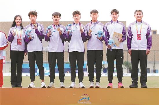 广州队在公开组田径男子4×100米接力颁奖仪式上