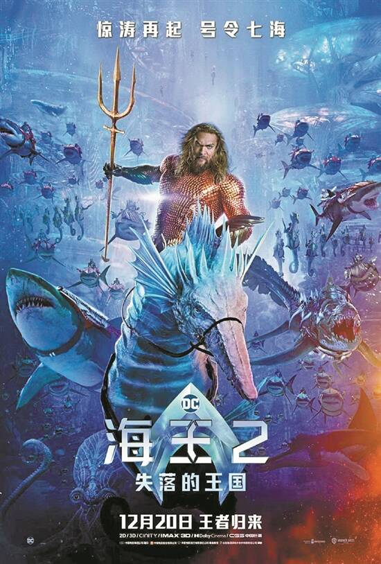 《海王2:失落的王国》发布中国内地定档预告和海报,将于12月20日在中国内地上映,12月22日在北美上映。片方官微写道:“惊涛再起,王者归来!黑暗三叉戟现世,宿敌强势袭来,海王如何捍卫家园?”
