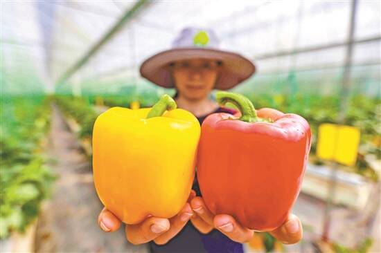 先进的农业科技与高效的农业生产,也带来了高品质的农产品。彩椒繁育大棚中,整齐排列的彩椒苗在循环风机的吹拂下摇曳浮动,拳头大小的果实若隐若现。“从水肥到土壤,我们均按照绿色产品标准进行选择。成熟后的彩椒摘下洗洗就可以直接生吃,口感脆甜、纤维度低。”都传新介绍道,这些来自荷兰的彩椒品种每亩产量可以达到4至5吨,一半直销广州市场,另一半则销往香港、澳门等地的高档餐厅。