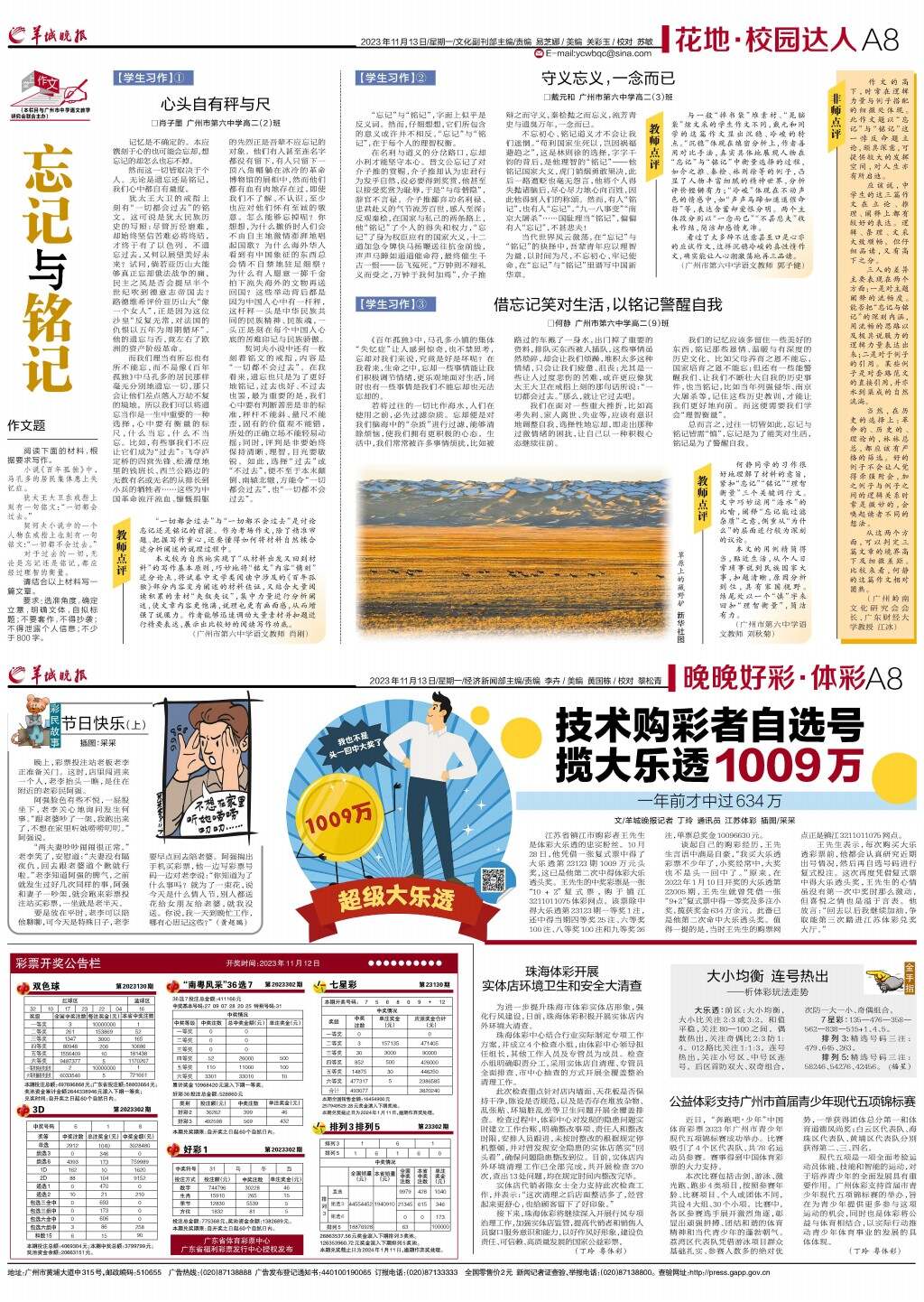 第A08版:花地·校园达人;晚晚好彩·体彩;广告