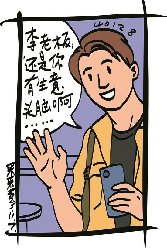 阿林就调侃起老板来,说:“李老板,还是你有生意头脑啊,也够勤奋。你瞧这天气,其他人都关门休息了,你还坚持开店,赚不少了吧?该你发财啊!”