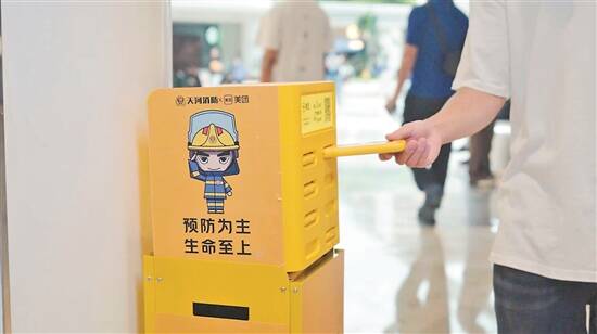 天河区消防救援大队联合美团,在外卖骑手的送餐箱和共享单车车篮上设置了消防安全提示标语,并在天河区辖内人流量密集的商圈等推广布置了消防安全主题充电宝。这些充电宝的柜身、机身上均张贴有不同的消防安全知识标语。截至目前,500余个消防安全主题共享充电宝已在全区各场所投入使用。