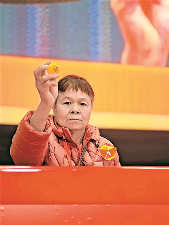 范阿姨是第一位上台摇珠的村民代表 羊城晚报记者 冷霜 摄