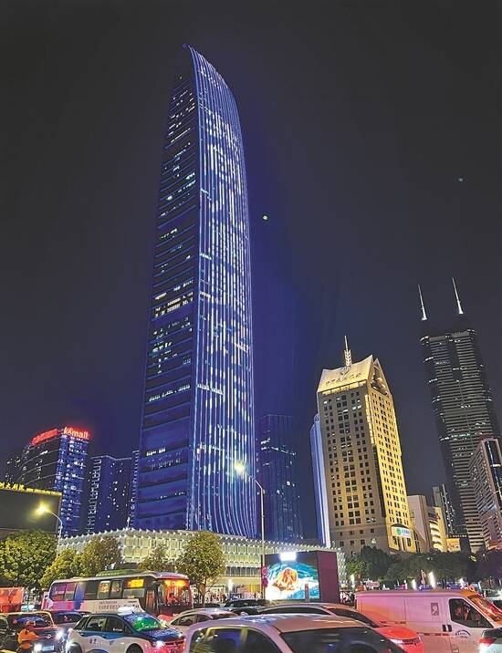 11月20日,深圳市区的楼宇为世界儿童日亮灯 新华社发