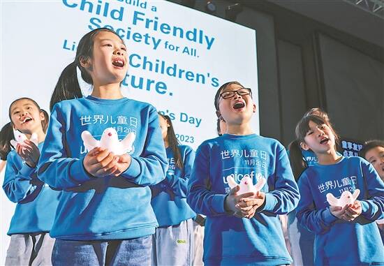 11月20日,世界儿童日主题庆祝活动在京举行,孩子们在活动中表演 新华社发