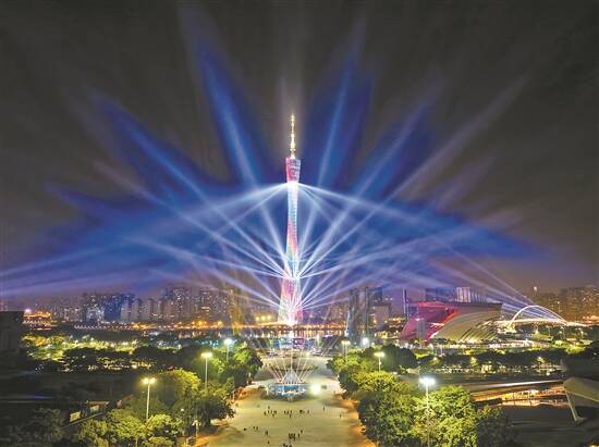 本届灯光节以“炫美湾区·光耀羊城·智造未来”为主题,将科技感与文化味、创意性与艺术性、中国风与国际范融为一体 羊城晚报记者 蔡嘉鸿 摄