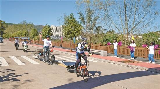 羊城晚报讯 记者欧阳志强,通讯员罗雪梅、邹荣海、陈武林、廖吉威摄影报道:11月21日,经过4天骑行,中法友好2023“太阳之旅”自行车拉力赛队员们顺利抵达韶关乐昌坪石镇华南教育历史研学基地(坪石),完成了从广州花都到韶关乐昌、长达400公里的骑行之旅。