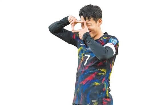 孙兴慜庆祝入球 羊城晚报记者 钟振彬 摄