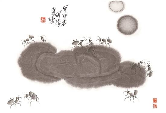 但这并不意味着这种硬笔软垫的创作方式是对传统水墨国画“照猫画虎”式的囫囵模仿,而是自有其精巧独到之处。通常而言,水墨画讲究“蚂蚁不入画”,意指以毛笔绘制身形娇小精细的蚂蚁难度颇高,周胜认为这恰恰是铅笔画可以大展身手的地方。以笔锋扫绘蚁身,以笔尖细描蚁腿,寥寥几笔,一只活灵活现的蚂蚁便可跃然纸上。据介绍,在2013年的中国(深圳)国际文化产业博览交易会上,周胜的铅笔画作品《周胜画蚁》摘得“中国工艺美术文化创意奖金奖”。