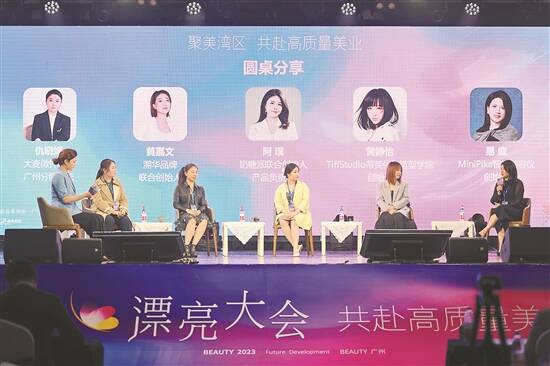 11月23日,由羊城晚报报业集团主办的“聚美湾区 共赴高质量美业”2023漂亮大会在羊城创意产业园举办。在圆桌分享环节,来自不同领域、不同企业的负责人围绕当下美业痛点及可持续发展路径等话题进行探讨和交流,讲述各品牌在漂亮的赛道上如何打出差异化。