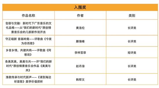 11月27日,“我们的新时代”2023首届广东青年音乐评论大赛在广州举行颁奖礼。本次大赛由广东省音乐家协会与广东省文艺评论家协会联合主办,《岭南音乐》杂志承办,共评出一等奖1名,二等奖2名,三等奖3名,入围奖5名。