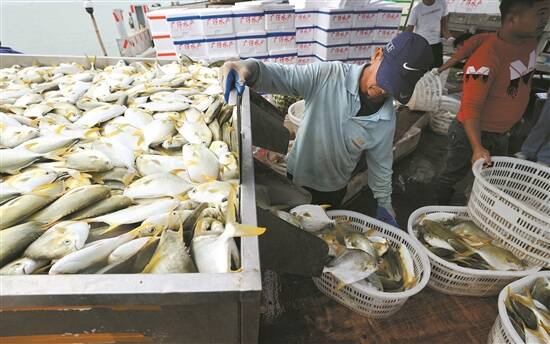 羊城晚报讯 记者袁增伟、通讯员李亚强报道:时下正值湛江“海洋牧场”收获季节。11月30日,记者在湛江遂溪草潭镇附近海域的养殖基地,现场直击金鲳鱼冬捕一线,目睹集中捕捞的壮观场景。