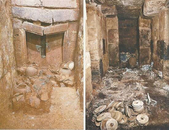 南越王墓发掘现场(左为墓道外藏椁、右为墓主棺室内)