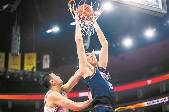 周琦(右)在比赛中上篮 新华社发