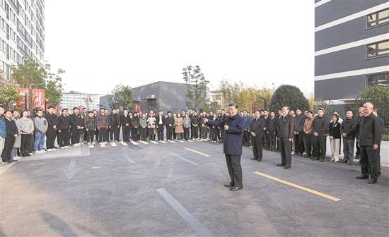 11月29日下午,习近平在上海市闵行区新时代城市建设者管理者之家,同社区居民亲切交流 新华社发