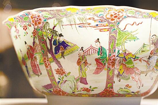 试想一下,在一场18世纪的欧洲贵族宴会上,一群金发碧眼的外国人围绕着一件来自中国的瓷器大碗欢呼雀跃。这件瓷器盛放着宴会美酒,宾客们面带微醺,争相品评。定睛一看,大碗周围刻画的竟是中国古典戏曲名著《西厢记》的人物故事图……