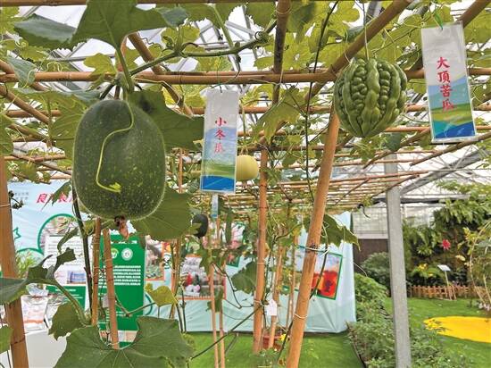 羊城晚报讯 记者梁正杰摄影报道:在一株冬瓜藤上长出了大顶苦瓜、小宝西瓜、三水雪梨瓜等不同作物……在创意农业展区,科技赋“农”结出了新成果;在良种展示区内,各式各样的蔬菜瓜果令人大开眼界……12月5日,第十七届佛山市农业良种良法展示推广月暨第二十二届广东种业大会佛山分会场活动启动仪式在佛山市农科所举行。