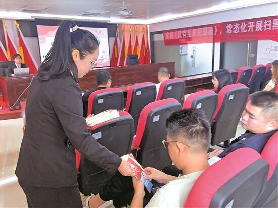 如何识别有组织犯罪?讲座上,法院干警围绕扫黑除恶、预防治理、打伞破网等多个方面向村民宣传了《反有组织犯罪法》的主要内容和重大意义。同时,干警们还为村民发放关于《反有组织犯罪法》的宣传册并提供法律咨询服务,在交流答疑中结合典型案例详细介绍了有组织犯罪基本特征、表现形式等知识,引导村民遵守法律法规、积极踊跃检举揭发有组织违法犯罪线索。