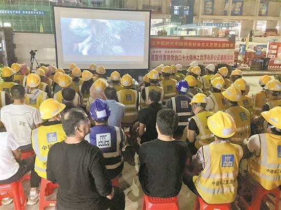 碧岭实践所为建筑工人放映电影
