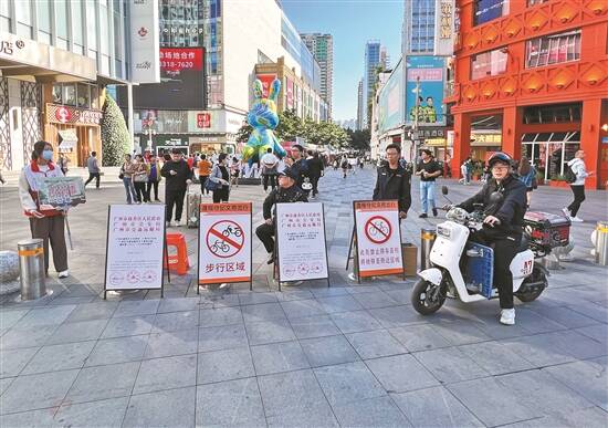 羊城晚报讯 记者梁怿韬、马思泳报道:《广州市公共休闲场地安全管理规定》(以下简称《规定》)将于明年1月1日起实施。根据《规定》,公园、广场、步行街全天禁止机动车、电动自行车、自行车以及电动独轮车、电动滑板车等具有动力装置的滑行工具进入。记者12月7日走访发现,不少场所已实施电动自行车、自行车等车辆禁止进入措施,但有市民无视管理要求及相关工作人员的劝阻,仍然骑车穿行。